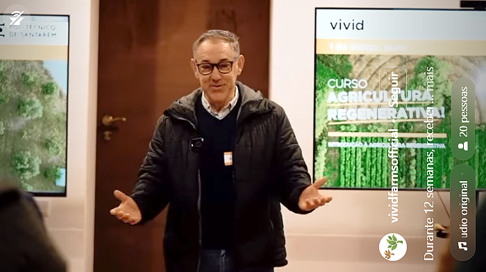 Participação no 1º curso reconhecido, em Portugal sobre agricultura regenerativa. Uma organização conjunta da Instituto Politécnico de Santarém/ESAS com a Vivid Farms onde foram partilhados os resultados dos projetos RedeSusTERRA e SoilLife1st. Março de 2025. Clique na imagem abaixo para o reel de instagram.